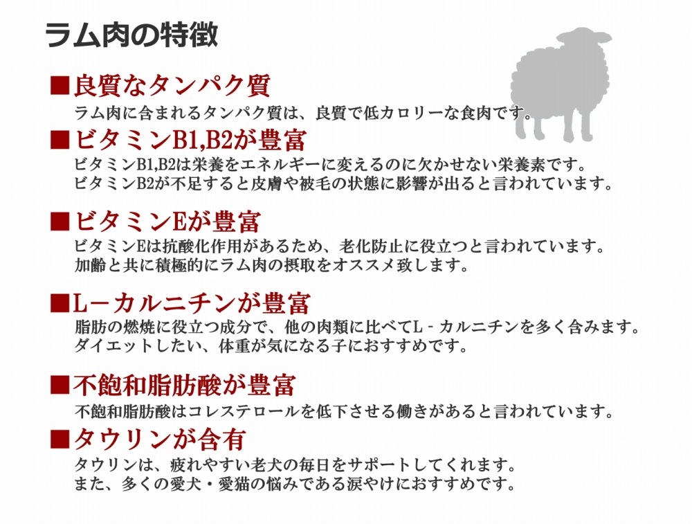 L-カルニチンが豊富なラム肉を使用。 嗜好性も重視!