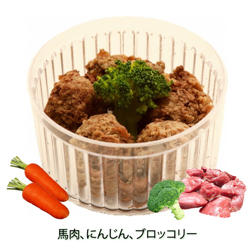 馬肉と人参を使用した、わんちゃん大喜びの大人気にんじん馬肉団子です。