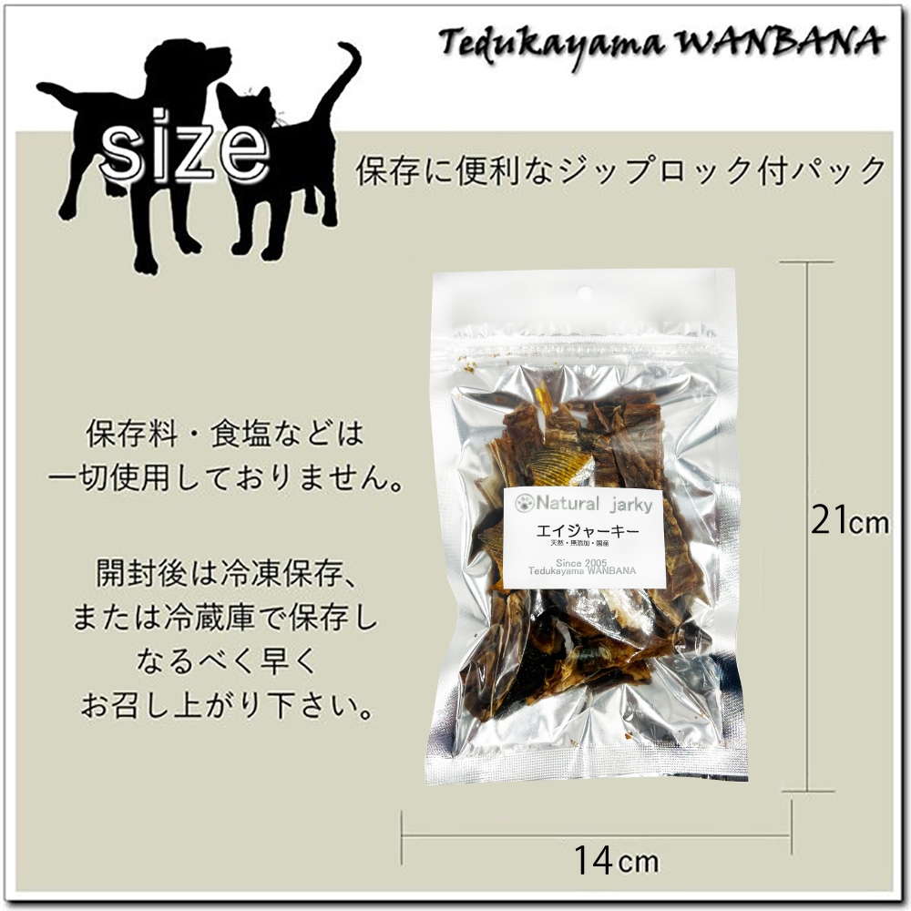 犬のおやつ 海の恵 えい 無添加エイジャーキー40g ビタミンB12・コラーゲンたっぷり!眼精疲労や皮膚・被毛のハリ・ツヤに!パピーからシニアまでデンタルケアにも 国産ふぞろい天然健康食材エイ 愛犬・ネコの体に優しいおやつ 帝塚山WANBANAワンバナ