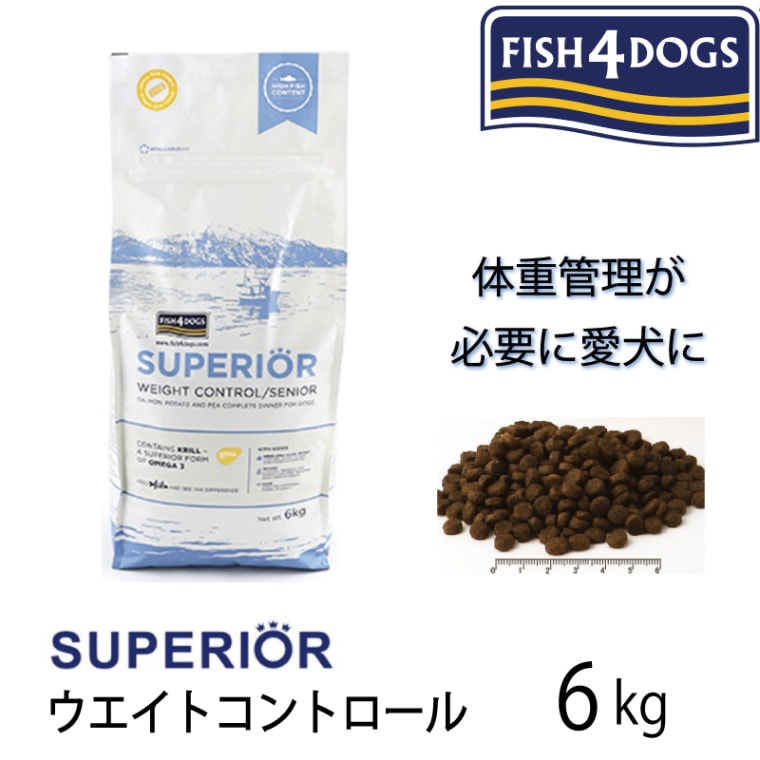フィッシュ4ドッグスーペリア ウエイトコントロール 6kg 体重管理・去勢避妊をしたわんちゃん用 成犬シニア犬対応 グレインフリー穀物不使用 食物アレルギー対応ドライ FISH4DOGS 正規品