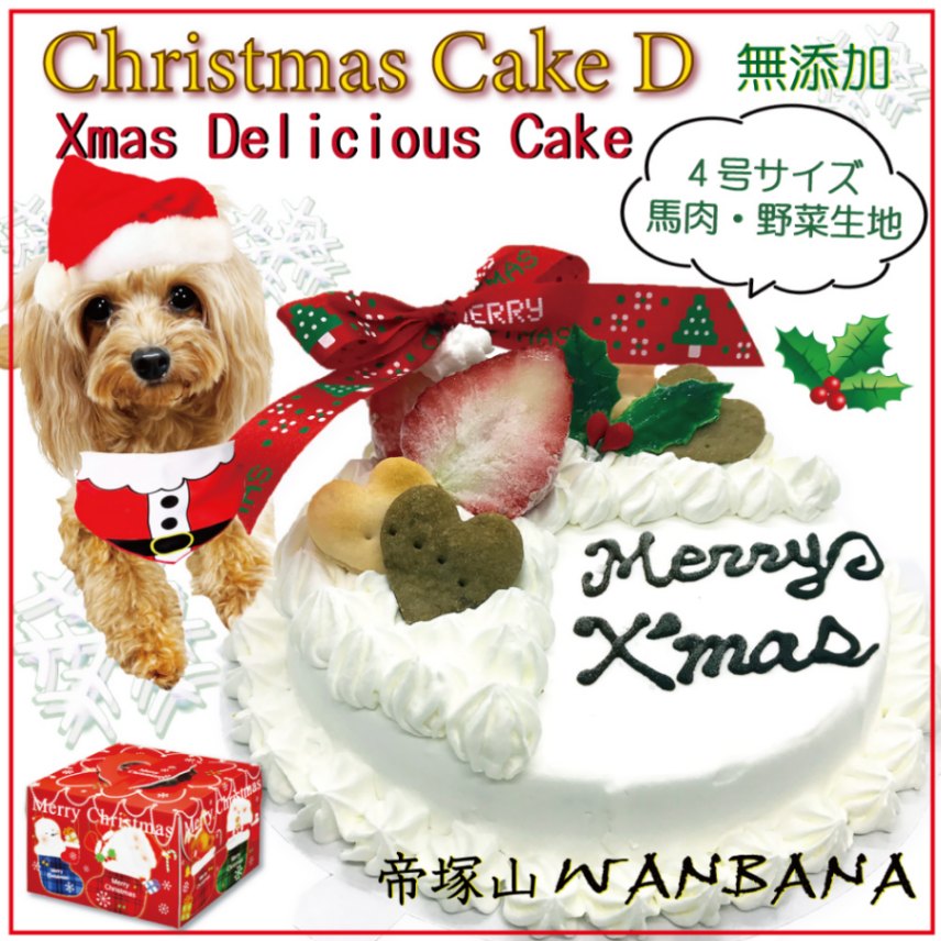 犬用 クリスマス ケーキ デリシャス 4号サイズ 直径12cm 馬肉とお野菜生地 ヘルシー な Xmas cake 食べっぷり最高 アレルギー対応 低カロリー 人気 ギフト 贈り物 プレゼントに パーティー オフ会 帝塚山WANBANAワンバナ おせち料理同梱可能