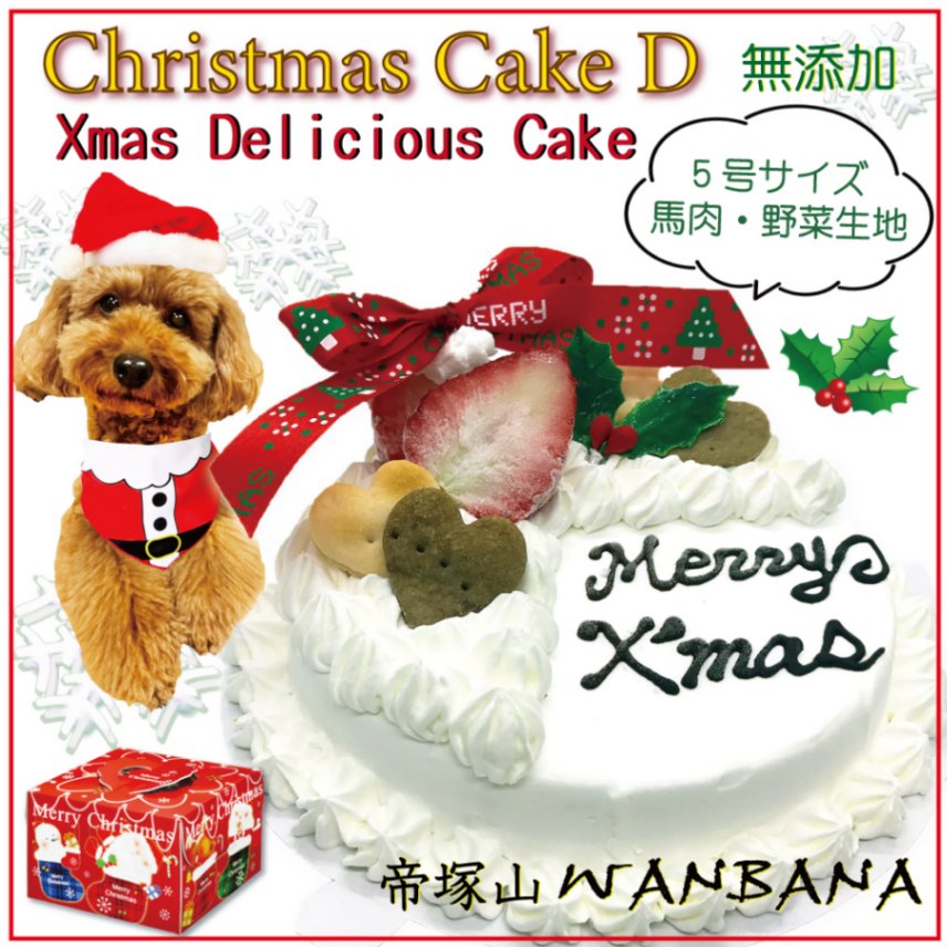 犬用のクリスマス ケーキ デリシャス 5号サイズ 直径15cm大 馬肉とお野菜生地 ヘルシー な Xmas cake 食べっぷり最高 低カロリー 人気 ギフト 贈り物 プレゼントに パーティー オフ会 アレルギー対応 帝塚山WANBANAワンバナ おせち料理同梱可能