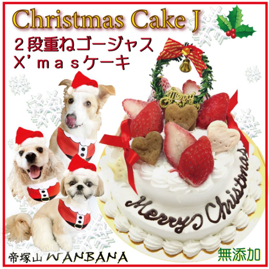 犬用の クリスマス ケーキ ゴージャス 2段ケーキ 無添加 馬肉とお野菜生地 アレルギー体質の愛犬も 豪華 Xmas cake 食べっぷり最高 鶏肉 乳製品 不使用 人気 ギフト 贈り物 プレゼント パーティー オフ会 お節料理同梱可能 帝塚山WANBANAワンバナ