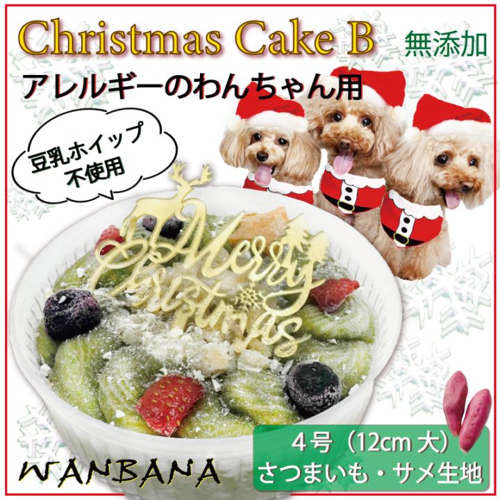 犬用クリスマスケーキB 4号サイズ アレルギーのわんちゃん用 豆乳不使用・さつまいもとサメ生地 お祝いフードやプレゼントに 国産 無添加 創業20年老舗ワンバナ