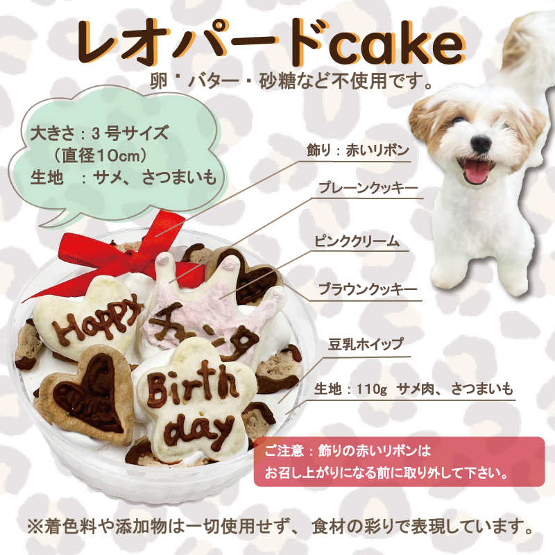 犬用ケーキ レオパード サメ肉 3号10cm 国産無添加 お名前入れして全国へ幸せをお届け!美味しいに決まってる!小型~大型犬まで大喜びで大満足!おやつやごはんにも!手作り愛情込めて ギフトやプレゼントに大人気!バースデーパーティーは一生の思い出 ワンバナ